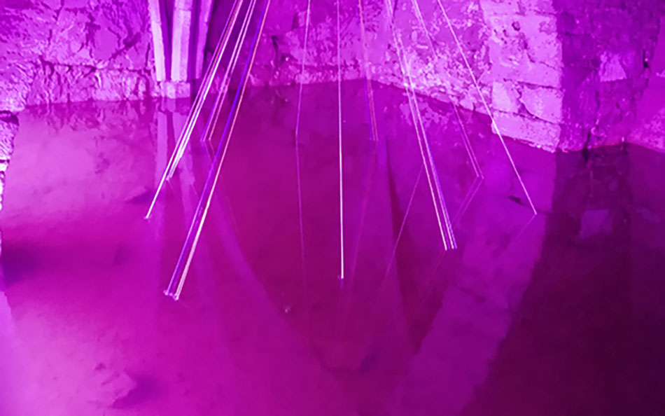 "Red shoes" | Raum-Klang-Installation | Zisterne | Weitra NÖ | Zusammenarbeit M. Urtz, C. Volf | 2023