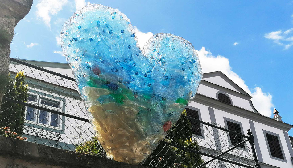 "2020mitHERZ! - Plastikflaschenherz" | Objekt | ca. 2x2m | Öffentlicher Raum mit Kunstschatzsuche | Weitra NÖ | 2020